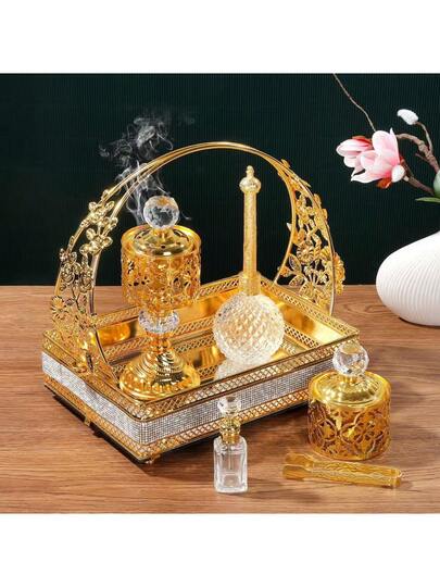 1 Set Luxury Gold Incense Burner, Mabkhara Incense Burner, Oud Burner, Bakhoor Burner. Suitable For Home & Outdoor Incense Burner, Aromatherapy, Ramadan Incense Burner, Ramadan Gift, Festivals - Multicolor - View 14