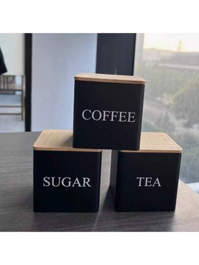 1 Set Of 3 Rectangular Bamboo Lid Tin Cans, Simple Ins European Style, Airtight Metal Container For Coffee, Candy, Tea Storage With Label, Easy Round Kitchen Canister Set - Multicolor - View 14