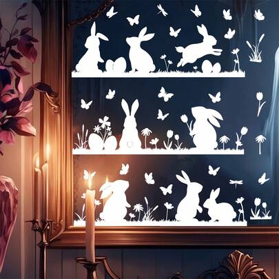 1 Set Of 6 White Easter Bunny, Eggs, Butterfly & Floral Window Clings, DIY Removable Static Stickers, Suitable For Spring Party Home Decor - Multicolor - View 3