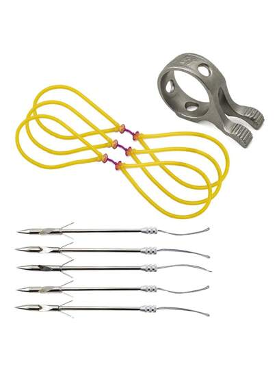 1 Set Outdoor Fishing Tools, Stainless Steel Fish Spear With Slingshot Accessories, Hunting Fishing Gear, Gift For Men And Women - Silver - View 5
