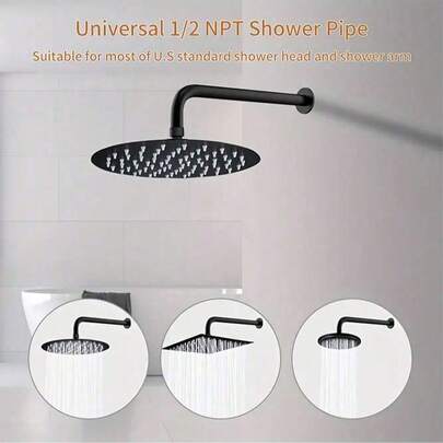 1 Set Wall-Mounted Shower Arm, Extended Cross Bar, Multiple Lengths Available, Black And Silver Options, Bathroom Accessories, Bathroom Hardware - Made Of Stainless Steel - 42 - View 1