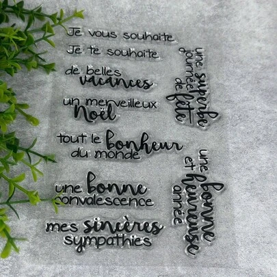 1 Transparent Clear Stamp Retro Rubber Transparent Card French Phrases Making Stamp DIY Scrapbook Photo Magazine Album Decoration Stamp - C - View 1