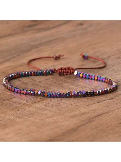 gxtbw 1 pc Simple New Fashionable Hematite Beads Adjustable Beads Bracelet Minimalist  Beaded Bohemia Bracelets for Women Men - color hematite - View 1