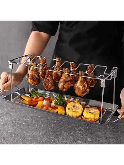 1 set Folding stainless steel leg tray bbq grill outdoor carrying chassis roast chicken rack - Silver - View 1