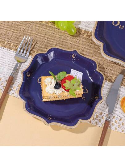 10/20/40/50pcs,Dark Blue And Gold EID Mubarak Paper Plates White Scalloped Eid Dessert Plates Eid Mubarak Dinner Plates Tableware For 2026 EID Mubarak And Ramadan Party Festival Decorations,Scalloped Cake Plates Suitable For Ramadan, Eid -Fitr, Party Decorations - Blue - View 14