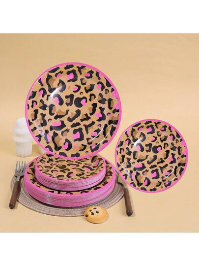 10/20/50pcs,Leopard Print Party Supplies Hot Pink Cheetah Print Birthday 7inch And 9inch Paper Plates For Baby Shower Birthday,Animal Jungle Birthday Party Plates For Animal Leopard Theme Baby Shower Party - Multicolor - View 14