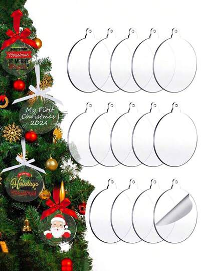 10/20pcs Blank Acrylic Christmas Decorations, Acrylic Ornament Blanks,Round Circle Acrylic Blanks Bulk,Card Acrylic Discs Keychain With Hole,Acrylic Discs Christmas Tree Hanging Ornament - Clear - View 1