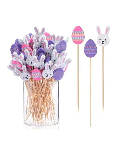 10/30pcs Assorted Easter Bunny, Colorful Easter Egg, Bunny Decorative Bamboo Sticks, Cocktail, Fruit, Dessert, Appetizer, BBQ Bamboo Skewers, Birthday Party, Holiday Decoration Supplies - Multicolor - View 1