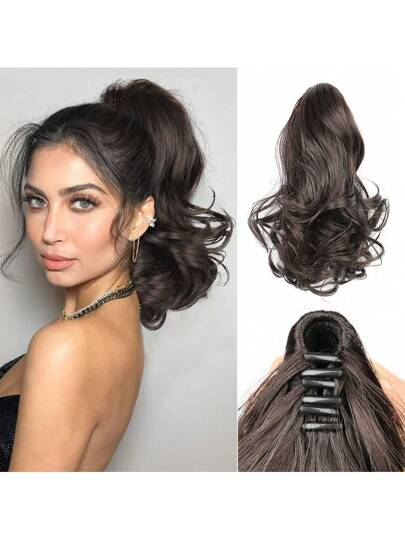 10 Inch Claw Clip Ponytail Extensions Synthetic Short Curly Ponytail Hairpieces Elegant Short Curly Wavy Clip-In Ponytail Extension For Women - Multicolor - View 1