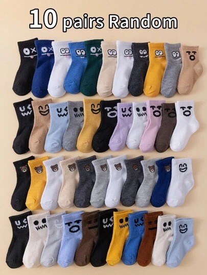 10 Pairs Kids Bear Pattern Mid-Calf Socks, Suitable For Spring And Summer - Blue - View 10