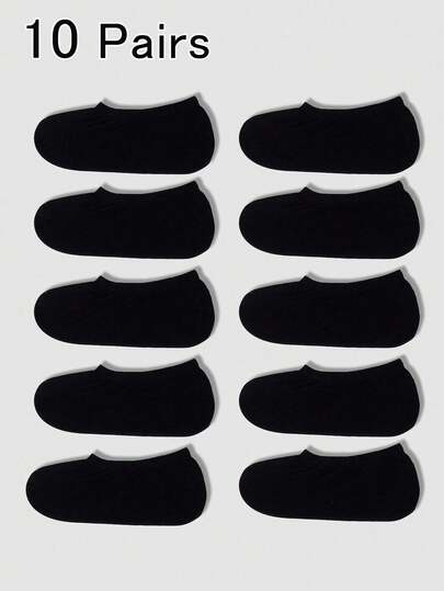 10 Pairs Of Children's Summer Thin Mesh Breathable Pure Black Low-Cut Invisible Boat Socks With Non-Slip Heels, Perfect For Everyday Wear. - Black - View 1