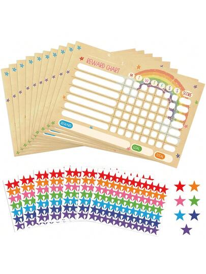 10 Reward Charts And 7 Sheets Star Stickers - Positive Motivation Star Chart For Chores + Good Behaviour At Home And Classroom - Multicolor - View 1