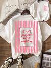 Positive Slogan Text Perfect Striped Graphic T-Shirt, Women's Casual Round Neck Short Sleeve Simple T-Shirt, Summer Vacation Beach Outfit