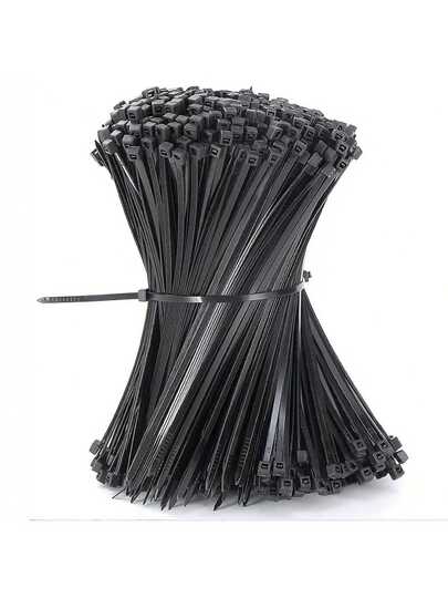 100/200/400pcs Premium Heavy Duty Plastic Wire Ties - Self-Locking Nylon Tie Wraps 4Inch/6Inch/8Inch/10Inch/12Inch, 50 Pounds Tensile Strength, Black, Indoor And Outdoor Use, Weather Resistant, Ultra Durable Cable Management Pack For Home Office Garage Garden, Multi-Size Convenience, Quick Grip, Tidy Organization For Wires, Cords, Hoses, And Tools In Various Scenes - Black - View 1