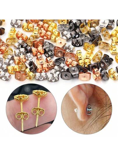 100-200pcs/Pack Stainless Steel Round Ear Plugs, Titanium Steel Butterfly Clasp Ear Studs, Earring Accessories, Anti-Slip Tools, Wholesale For DIY Jewelry Making Earring Components - Butterfly Ear Plugs - View 9