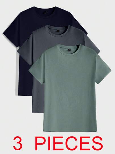 EURMUSE 100%Cotton Men's Basic Round Neck T-Shirt Set (Multiple Pieces) - Multicolor - View 1