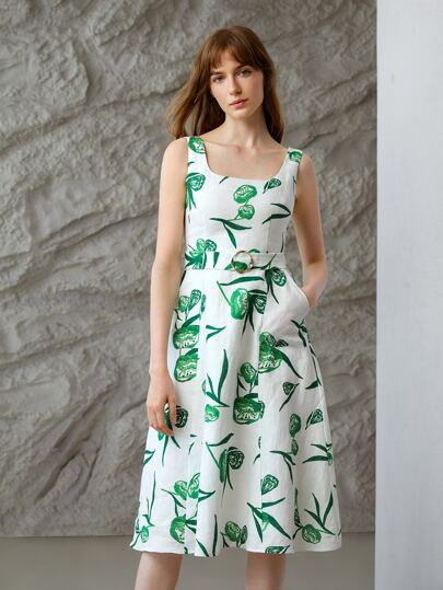 MOTF PREMIUM 100% LINEN PLANTS Ring DETAIL DRESS - Multicolor - View 1
