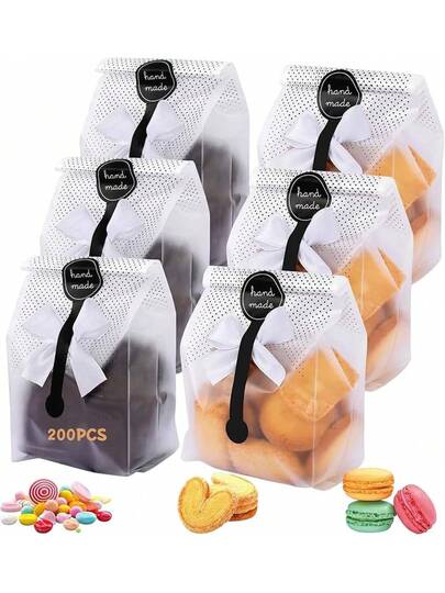 100 Pieces Of Translucent Plastic Bags For Cookies And Sweets - White - View 11