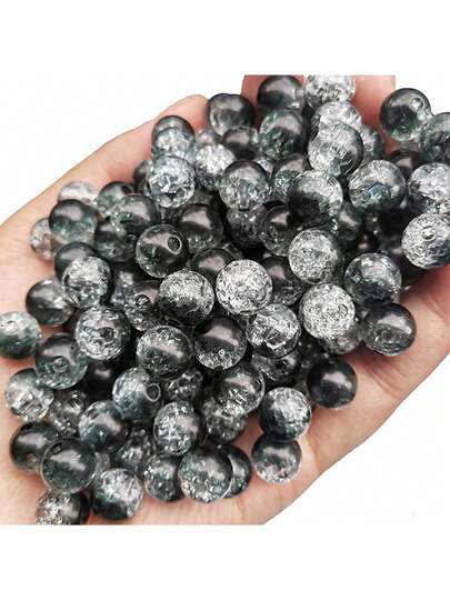 100pcs/200pcs 8mm Dual-Color Crackle Beads, Dual-Color Resin Beads For Handmade DIY Jewelry Accessories, Suitable For Bracelets, Necklaces, Earrings, Vases, Wishing Bottles, Filler - Black - View 6