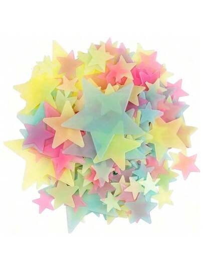 100pcs/200pcs Glow In The Dark Stars, Fluorescent Wall And Ceiling Star Stickers, Make The Bedroom Twinkle Like The Night Sky, Bedroom Decorations, Home Decoration (Note!!! This Product Needs To Absorb Light Source To Glow- If You Mind, Please Don't Buy It) Wall Decor Wall Sticker Personalised Stickers - Multicolor - View 1