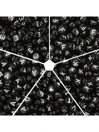 100pcs/Pack Acrylic Flat Round Letter Beads, Suitable For DIY Crafts, Bracelets, Necklaces, Pendants With Black Background & White Letters, "Kandi" Style - Black - View 14
