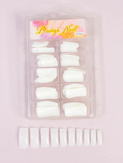 100pcs Plain Fake Nail - White - View 1