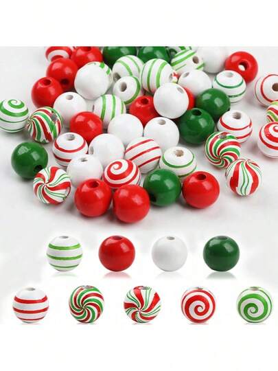 100pcs Random Christmas Wooden Beads, 16mm Christmas Wooden Beads Crafts, Christmas Wooden Beads Decorations, DIY Christmas Party Supplies, White Candy Beads For Christmas Bracelet Making, DIY Christmas Wreath Tree, Home Party Holiday Decor, Christmas Beaded Combo Suitable For DIY Jewelry, Necklace, Bracelet, Earring, Holiday Party Decoration Kit - Multicolor - View 1