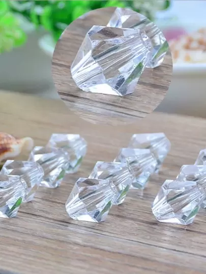 100pcs Transparent White Crystal Rhombus Shaped Double Pointed Hole Beads For Handcraft Diy Jewelry Making, Suitable For Bracelets, Necklaces, Anklets And Pendants - Clear - View 6