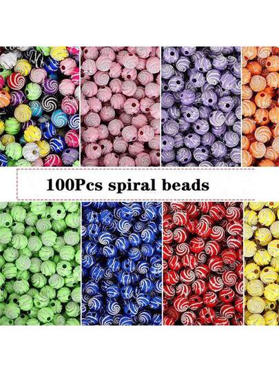100pieces 8mm Colored Spiral Striped Acrylic Round Beads Handmade DIY Beaded Bracelets With Diamonds Phone Chain Accessories - 100pcs/8mm - View 1
