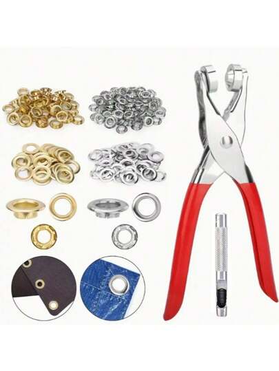 101/202/402pcs 4.5/6/12mm Eyelets And Eyelet Plier Set, Gold/Silver Eyelets And Grommets, With Punch And Fixing Tool For Sewing And Crafting, Five-Claw Fastener Installation Kit, Snap Button, Snap Fastener Plier, Sewing Grommet Kit, Metal Eyelets And Gold/Silver Washers, Manual Eyelet And Grommet Punch Set, Suitable For Leather/Belts/Shoes/Handicrafts - Multicolor - View 1