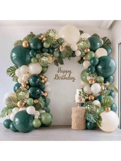 106pcs Emerald Green & White Gold Balloon Arch Kit, Double-Stuffed Dark Green, Light Green, Gray Green, Sand White, Champagne Gold Balloons Wreath Suitable For Boys, Girls, Kids, Babies Birthday Party, Wedding, Jungle Party Decor - Green - View 9