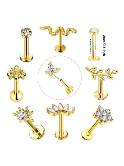 10Pcs 316 Surgical Steel Tragus Piercing Lip Stud Earring For Women Girl,18K Gold Internally Threaded Fashion Combination Cartilage Helix Ear Jewelry Suitable For Daily And Banquets To Wear - Yellow Gold - View 8