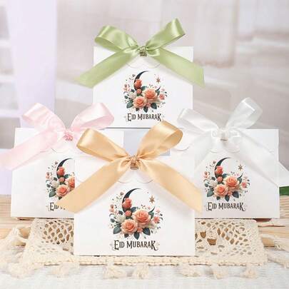 10Pcs Eid Mubarak Gift Box - Islamic Festival Decoration Gift Box With Rose Flower Moon Star Pattern And Ribbon Bow For Eid Al-Fitr Holiday Party Favor Supplies - Wave Cover - View 4