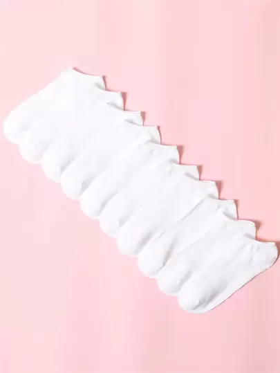 10pairs Solid White Ankle Socks - White - View 1