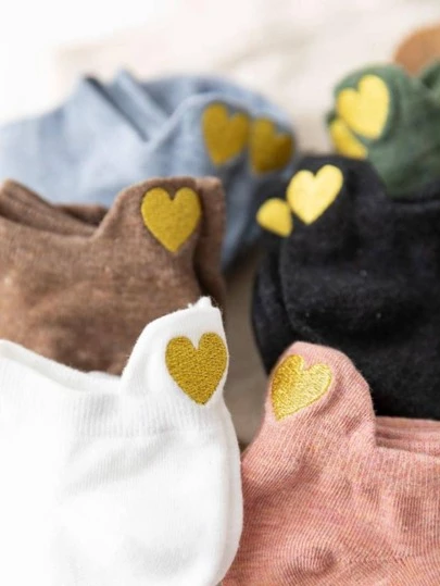 10pairs Women Heart Embroidery Fashion Ankle Socks, For Spring - Multicolor - View 10