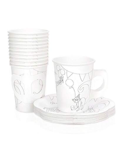 10pcs/20pcs/40pcs DIY Painted Tea Party Cups With Handles, DIY Painted Tea Cup Saucers, Party Set For Snacks, Desserts, Ice Cream, Suitable For Zoo, Wild Animal, Jungle Animal Themed Birthday Party Decorations And Craft Gifts - Multicolor - View 11
