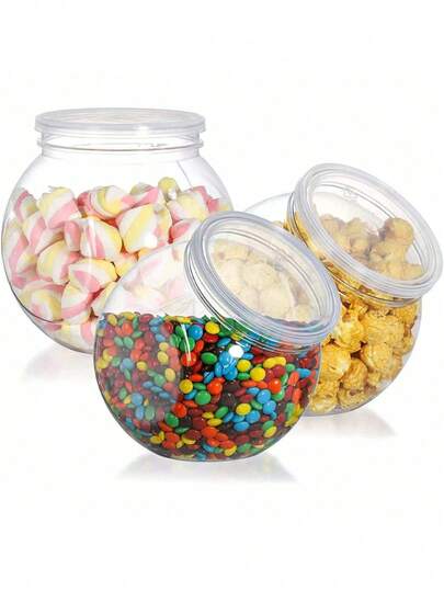 10pcs 350ml Transparent Plastic Candy Jars With Lids, Wide Mouth Cookie Storage Containers With Covers, Suitable For Kitchen Countertop To Store Candy, Jelly Beans, Cookies And Snacks - Transparent - View 3