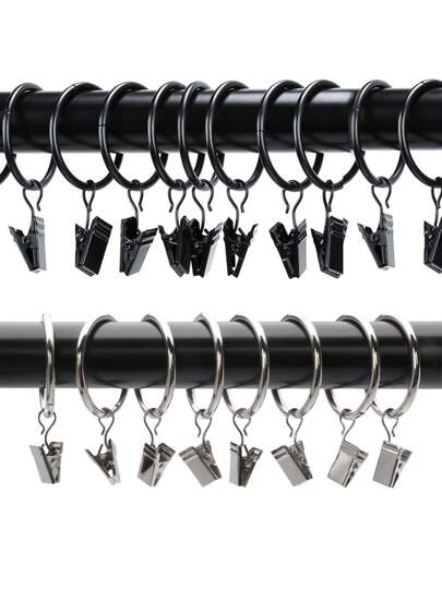 10pcs/40pcs Curtain Rings With Clips, Window Curtain Clip Rings, 1.26 Inch Inner Diameter, Suitable For Living Room Curtain Rods, Bathroom Curtain Rods, Curtain Rods, Easy To Use, Gold, Black, Silver - Multicolor - View 11