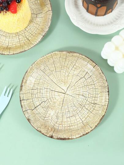 10pcs 7 Inch/9 Inch Disposable Paper Plates, Simple Light-Colored Horizontal Wood Grain Pattern, Suitable For Various Theme Parties Such As Birthday, Housewarming, Baby Shower, Etc. - Multicolor - View 4