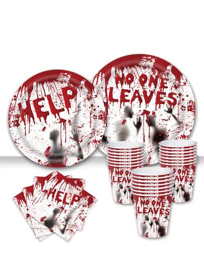 10pcs Halloween Bloody Theme Plates Mugs And Napkins Party Supplies Zombie Skeleton Bloody Good Times Cutlery Set Halloween Party Decorative Gifts Birthday Party For Halloween Parties - Multicolor - View 10