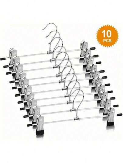 10pcs Metal Adult Pants Hangers, Portable Clothes Clips - Silver - View 10