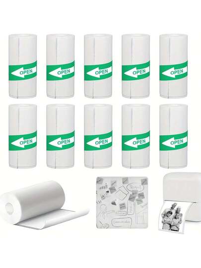 10pcs Printable Adhesive Paper,White Adhesive Thermal Paper,Sticker Paper Printer Paper For Kids Camera Printing Study Notes Photo - White - View 1