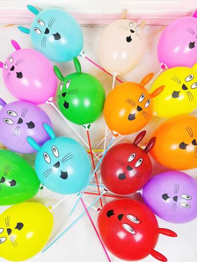 10pcs Random Color Rabbit Balloon, Cartoon Cute Decorative Balloon For Birthday Party - Multicolor - View 1