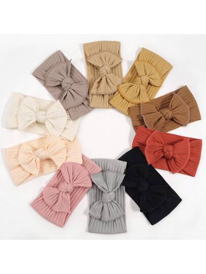 10pcs/Set Assorted Warm-Toned Pit Tie Bowknot Hairbands For Kids And Baby. Soft And Comfortable With New Texture Design, Woven Nylon Material Applicable All Year Round - Multicolor - View 1