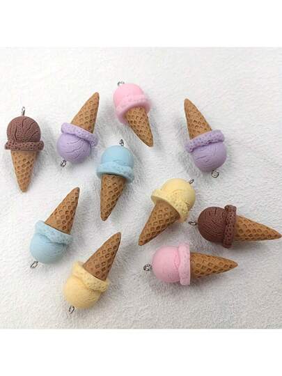 10pcs/Set Cute Resin Ice Cream Pendant Charms - Handmade Floating Charm, Suitable For DIY Keychain And Jewelry Making - Multicolor - View 1