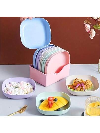 10pcs Square Plate Set With 1pc Stand, Portable Food Serving Tray, Suitable For Snacks And Breakfast, Plastic, Essential Kitchen Utility. Dining Table Garbage Plate, Bone Plate, Home Bone Plate, Bone Dish, Small Snack Plate, Creative Plastic Vegetable Plate With Base.,School Supplies - Food Tray Set - View 1