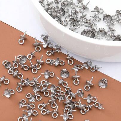 10pcs Stainless Steel Sheep Eye Rivet Pearl Pendant Connector, Suitable For DIY Jewelry Making, Beaded Cap Accessories And Handmade Craft Supplies - Stainless Steel Pendant Buckle - View 1