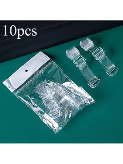 10pcs Transparent Adjustable Elastic Damage-Free Shoulder Straps, Soft Comfortable Bra Accessories Suitable For Women Lingerie - White - View 1