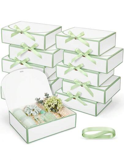 Hộp quà cầu hôn phù dâu (10 chiếc), kích thước 10.6 x 8 x 3.15 inch, hộp giấy có nắp đậy, thích hợp cho đám cưới, tiệc mừng em bé, tiệc sinh nhật, tiệc cô dâu, cầu hôn phù dâu, có thể tái sử dụng (Trắng, Xanh lá nhạt)