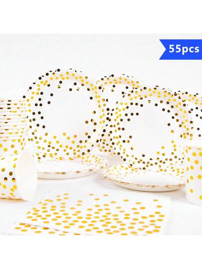 10pcs White & Gold Polka Dot Disposable Plate, Napkin And Cup Set, Plates, Napkins And Cups Party Supplies Suitable For 10 Guests, Disposable Paper Plates Party Tableware For Birthday, Wedding, Party, Family Picnic - Multicolor - View 1